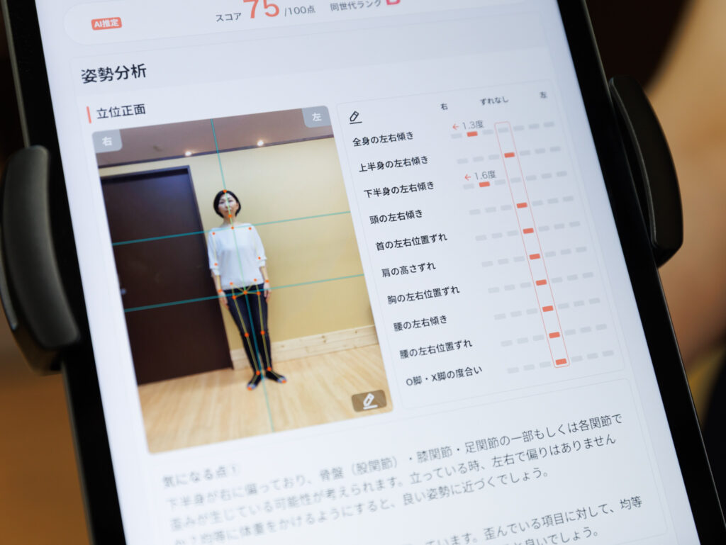 6つのポーズで写真を撮り、AI機能が姿勢を分析・診断。